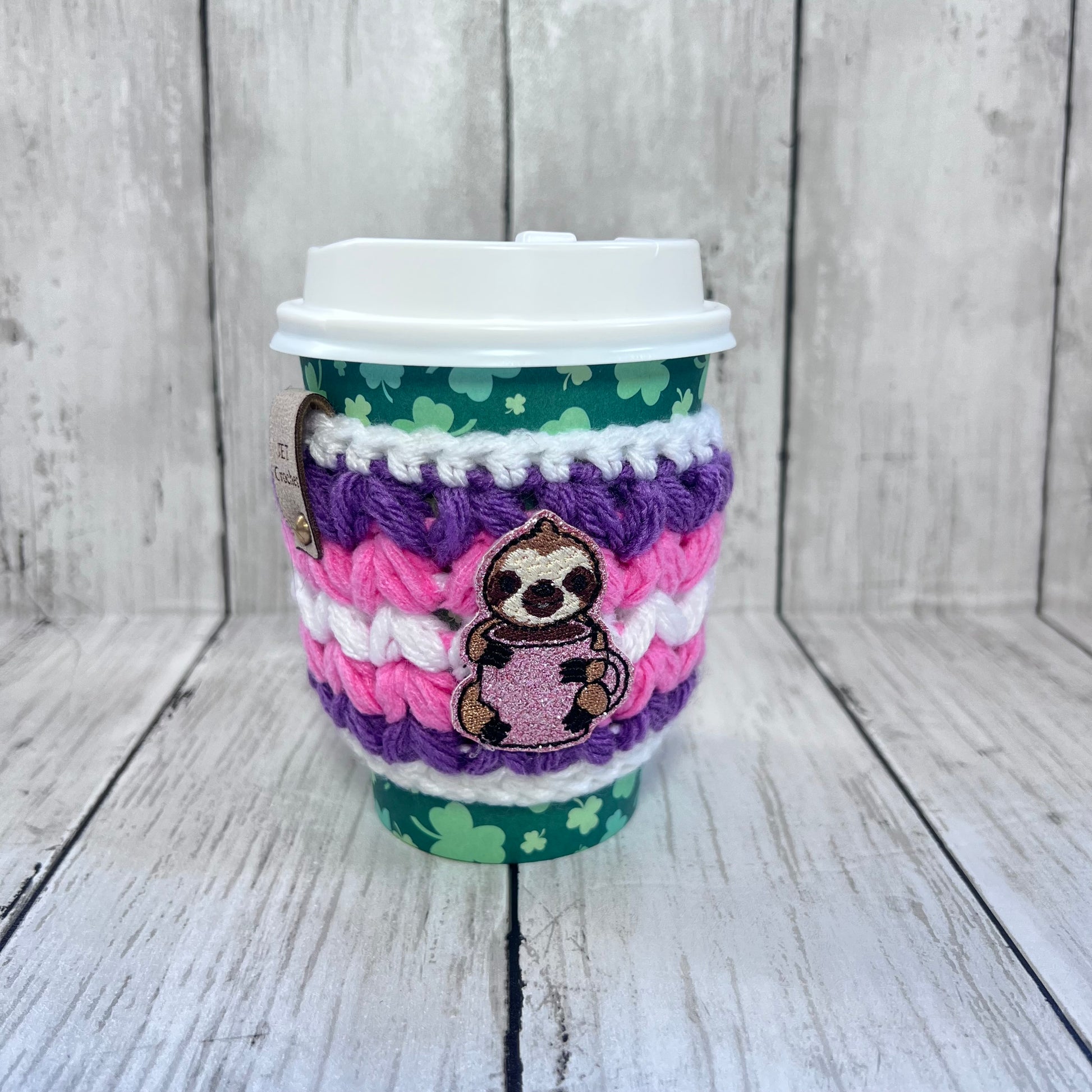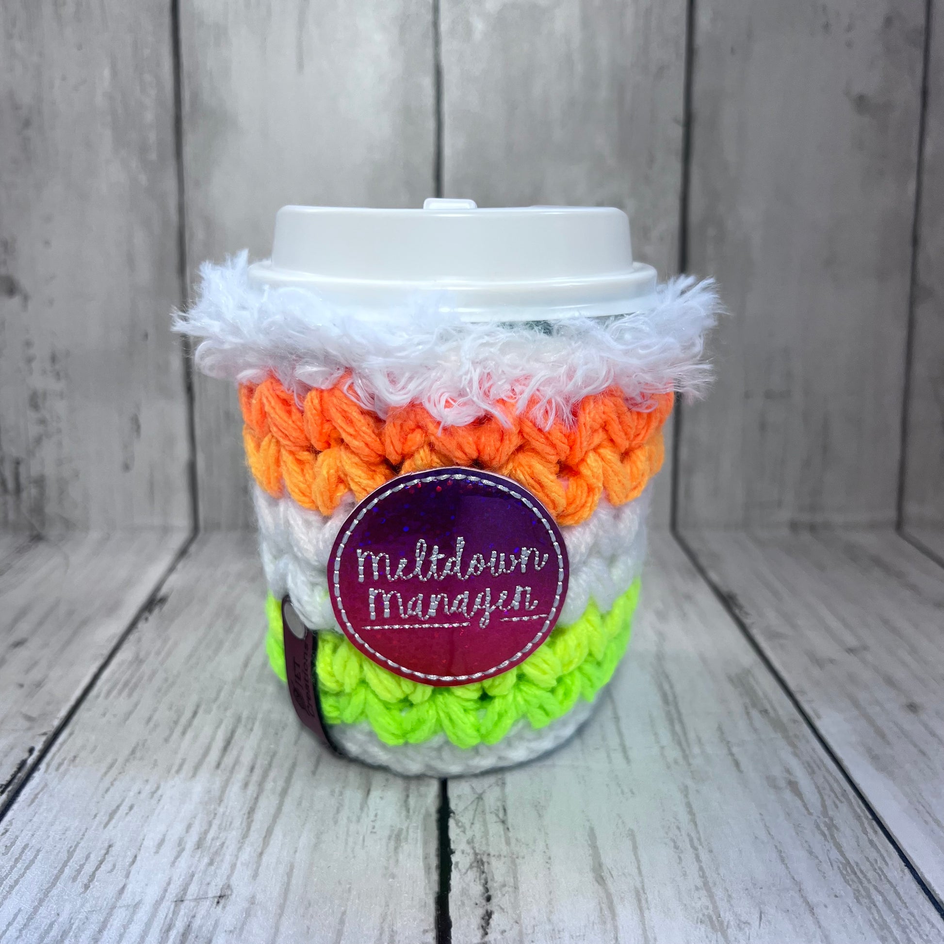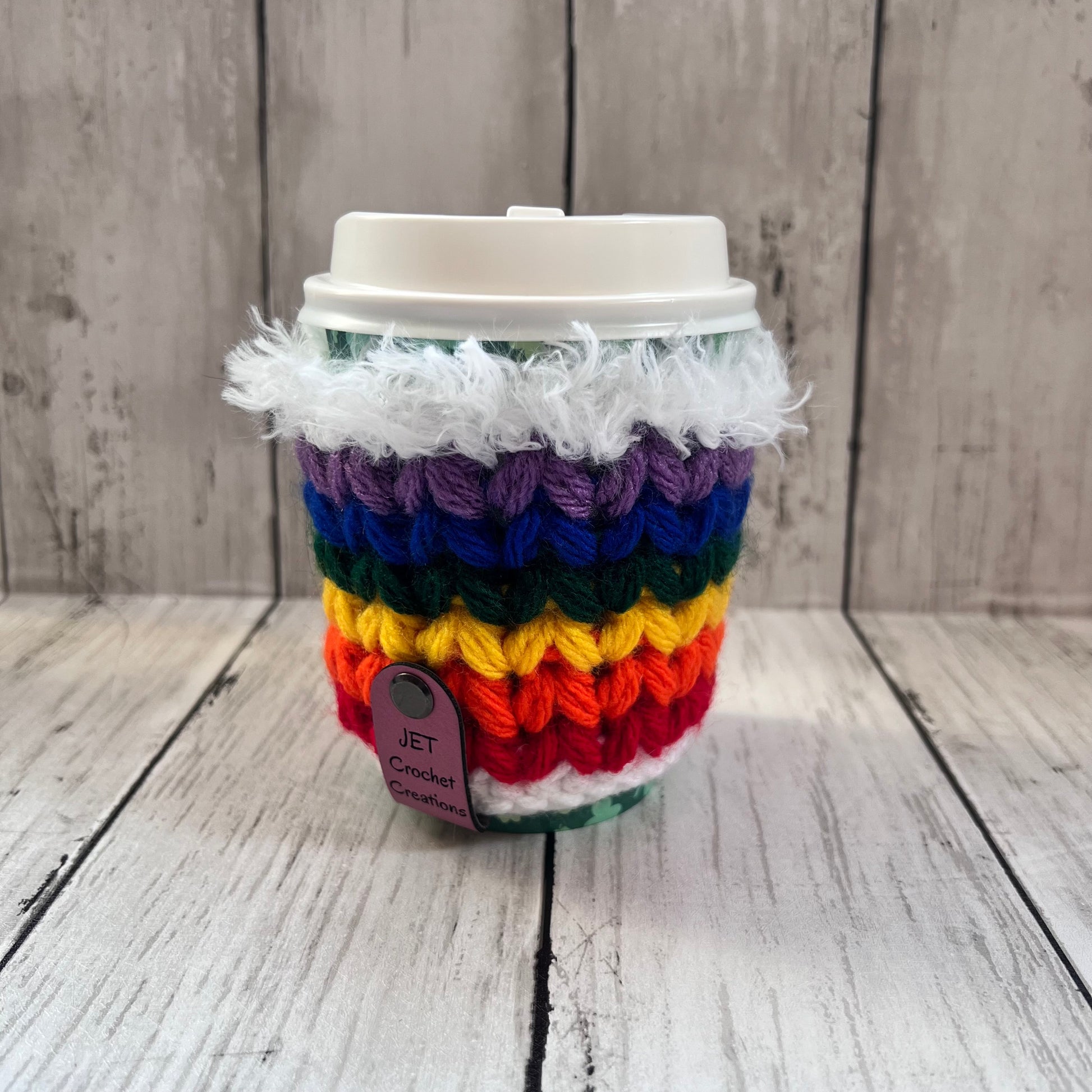 Keep your hands cozy with this playful crochet cup sleeve. Handmade with vibrant yarns, it adds a splash of fun while protecting your fingers from hot or cold beverages. Perfect for brightening up your daily coffee or tea routine!